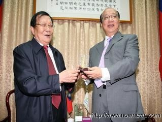 江蘇省華西村前書記吳仁寶,拜訪臺(tái)中市長胡志強(qiáng)。圖片來源:臺(tái)灣“今日新聞”