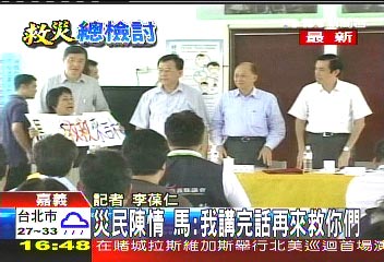 馬英九講話,災(zāi)民欲陳情。圖片來源:臺(tái)灣TVBS電視臺(tái)