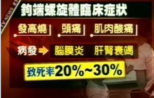 據(jù)臺(tái)灣“今日新聞”報(bào)道,萬丹鄉(xiāng)后灣村在8月17日爆發(fā)鉤端螺旋體病的疫情,之后附近的7個(gè)村鎮(zhèn)也陸續(xù)傳出疫情,據(jù)統(tǒng)計(jì),萬丹鄉(xiāng)通報(bào)的疑似案例有180例,全鄉(xiāng)陸續(xù)有90多人住院治療,確定是鉤端螺旋體病的有51人,目前還在住院觀察的有20人,3人住在加護(hù)病房。