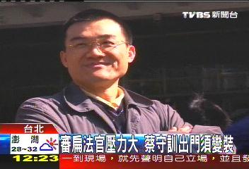 據(jù)臺灣TVBS電視臺報道,法官蔡守訓(xùn)承審陳水扁案的這段時間內(nèi),根本就完全改變了生活型態(tài),原本就行事低調(diào)的他,因為家門口被拉布條抗議過,也有人在網(wǎng)絡(luò)上留言恐嚇,讓他的生活范圍縮小到辦公室跟家里兩個地點。