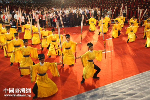 9月27日上午,2009年第二屆兩岸師生聯(lián)合祭孔大典在臺(tái)灣新竹縣立體育館舉行,圖為祭孔大典現(xiàn)場(chǎng)。(中國(guó)臺(tái)灣網(wǎng) 李杰 攝)