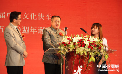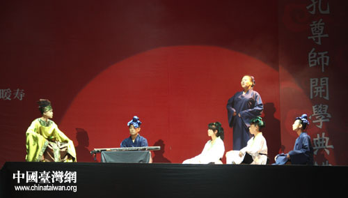 兩岸學(xué)生共演《論語(yǔ)》短劇,題為《學(xué)做人、學(xué)做事、學(xué)擔(dān)當(dāng)天下》的古今師生對(duì)話。(中國(guó)臺(tái)灣網(wǎng) 李杰 攝)