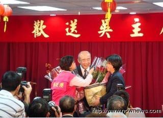 國民黨第18次全代會即將于本周六(17日)登場,新舊主席將進行交接,國民黨14日下午特別為將卸任的黨主席吳伯雄舉辦歡送茶會,國民黨“立委”楊瓊瓔在茶會上獻花并獻吻。來源:臺灣“今日新聞網(wǎng)”
