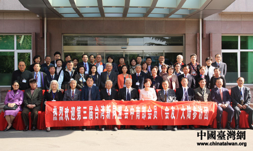 出席座談會的民革中央領(lǐng)導(dǎo)與第三屆臺灣新同盟會中南部會員大陸參訪團團員合影留念。(中國臺灣網(wǎng) 高斯斯 攝)