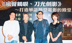 張大春(左起)、侯孝賢、陳國富舉辦“打造華語類型電影的殿堂”座談會,陳雅琳擔任主持人。(圖片來源:臺灣《中國時報》)