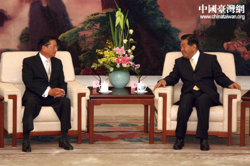 中共中央政治局常委、全國(guó)政協(xié)主席賈慶林28日下午在人民大會(huì)堂會(huì)見了臺(tái)灣;鶗(huì)董事長(zhǎng)江丙坤率領(lǐng)的;鶗(huì)新聞交流團(tuán)一行。(中國(guó)臺(tái)灣網(wǎng) 田云鵬 攝)