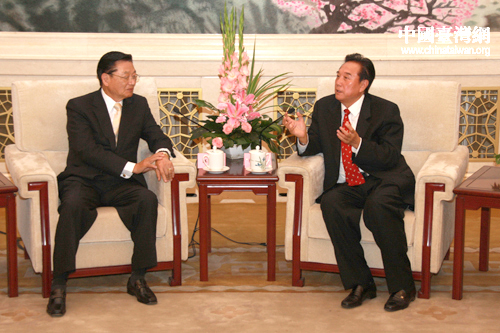 海協(xié)會會長陳云林28日下午在人民大會堂會見了臺灣海基會董事長江丙坤率領(lǐng)的;鶗侣劷涣鲌F一行。(中國臺灣網(wǎng) 田云鵬 攝)