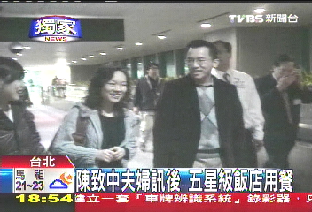 上午的庭訊結束后有民眾直擊,陳致中夫婦倆搭車到喜來登飯店2樓的泰式餐廳用餐。(圖片來源:臺灣TVBS電視臺)