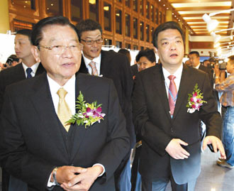 臺灣;鶗麻L江丙坤(前左)昨天出席第十二屆京臺科技論壇開幕式。來源:臺灣《聯(lián)合報》