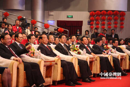海峽兩岸關(guān)系協(xié)會(huì)會(huì)長(zhǎng)陳云林、臺(tái)灣親民黨主席宋楚瑜、湖南省省長(zhǎng)周強(qiáng)、國(guó)臺(tái)辦副主任孫亞夫出席開(kāi)幕式(中國(guó)臺(tái)灣網(wǎng) 陳寧 攝)