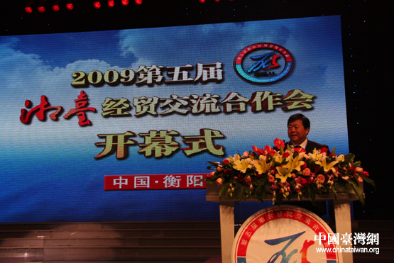 中國(guó)臺(tái)灣網(wǎng)11月6日衡陽(yáng)消息 由國(guó)務(wù)院臺(tái)灣事務(wù)辦公室和湖南省人民政府共同主辦的第五屆“湘臺(tái)經(jīng)貿(mào)交流合作會(huì)”今6日在湖南省衡陽(yáng)市開(kāi)幕。海峽兩岸關(guān)系協(xié)會(huì)會(huì)長(zhǎng)陳云林、臺(tái)灣親民黨主席宋楚瑜、湖南省省長(zhǎng)周強(qiáng)、國(guó)臺(tái)辦副主任孫亞夫出席并一起啟動(dòng)開(kāi)幕式按鈕。