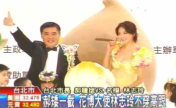 高挑的林志玲為配合郝龍斌的身高,貼心的不穿高跟鞋。 來源臺灣TVBS電視臺