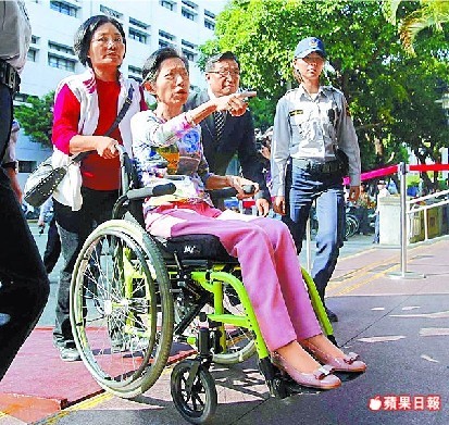 吳淑珍昨到出庭時(shí)不滿資產(chǎn)遭凍結(jié),向法官喊窮。來(lái)源:臺(tái)灣《蘋(píng)果日?qǐng)?bào)》