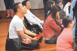 法會結束前,曹宇文拿隨喜紅包與璩美鳳給年輕的法師,她神情興奮,不斷露出天真甜美的招牌笑容,還抓著法師聊了約五分鐘,法師見排隊人多,要她稍晚再聊。