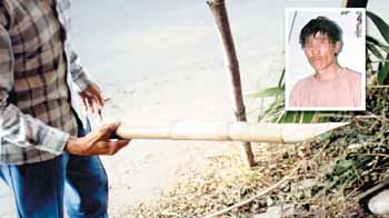 林姓女童十三年前慘遭歹徒以竹竿插入下體,圖為警方在現(xiàn)場找到的犯案尖竹,小圖為嫌犯十二年前落網(wǎng)時的照片!碓矗骸堵(lián)合報》
