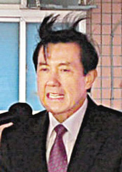馬英九昨天參加中山高五股楊梅段動(dòng)土典禮,致詞時(shí),風(fēng)勢(shì)強(qiáng)勁,發(fā)型大亂。圖片來(lái)源:臺(tái)灣《聯(lián)合報(bào)》