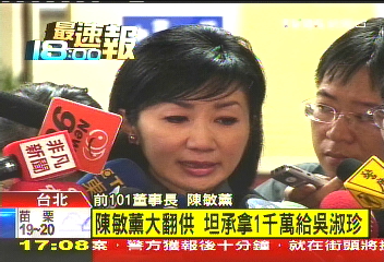 據(jù)報道,前101公司董事長陳敏薰今日在庭中首度坦承,曾經(jīng)送給扁嫂吳淑珍1000萬。法官立刻追問第一次詢問時為何說謊,陳敏薰供稱當(dāng)時擔(dān)心行賄跟偽證罪被告之間的刑責(zé),以及人性跟情理的沖突,并且顧及和吳淑珍之間的情誼,因此才沒有吐實。