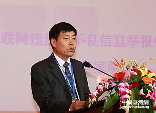 互聯(lián)網(wǎng)違法與不良信息舉報中心主任、中國網(wǎng)執(zhí)行總裁李家明做主題演講。 (中國臺灣網(wǎng) 發(fā))