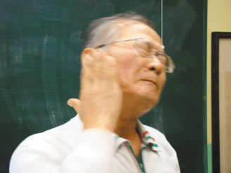 嘉義縣民進(jìn)黨員蔡豐文昨天在翁重鈞記者會(huì)上,自打三個(gè)耳光,懲罰自己八年支持陳水扁及陳明文。圖片來源:臺(tái)灣《聯(lián)合報(bào)》