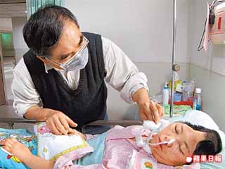 樓容妤(44歲)的丈夫李青武是初中數(shù)學(xué)老師,事后對(duì)妻子不離不棄,雖然妻子美麗容顏已不復(fù)見,頭顱兩側(cè)頭骨取出、嚴(yán)重內(nèi)凹,但他每天放學(xué)后都到醫(yī)院對(duì)妻子說話。樓容妤癱瘓后,李青武白天忙上課,晚上到病房陪妻子,還要料理家務(wù)、出庭打官司,家庭重?fù)?dān)全落在他身上,有時(shí)自覺像蠟燭般快被燒盡,“所幸女兒很懂事,比我還堅(jiān)強(qiáng),都是她鼓勵(lì)我不能放棄!