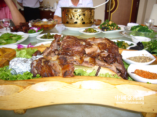 草原沿途都有院長的朋友一路宴請,天天大宴小酌,敬白酒、吃羊肉,是必不可少的公式,也是我心頭與身體一大負擔,但蒙族習俗如此,如果拒絕,就是最大的失禮。在內(nèi)蒙古,羊身上各部位,都各有名稱與吃法,例如羊的肩胛骨,別名“七十”,是羊肉的珍品,從前這個部位不能獨享,吃的時候要分給眾人,一人只得一小條,如果有舅父在場,更得征求舅父的同意才能吃,分肉時還得說:“扎(蒙語‘給’),胛子肉敬獻給大家”,受的人也得口占祝福的話,例如: