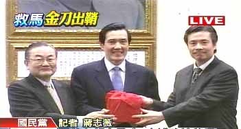 金溥聰(右一)從詹春柏與馬英九的手上接下印信。 來源:臺灣TVBS電視臺
