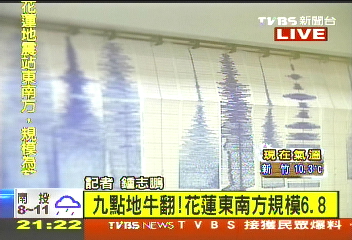 據(jù)臺(tái)媒報(bào)道,這起地震發(fā)生在今天晚間9點(diǎn)2分,震央在花蓮東南方外海,地震規(guī)模有里氏6.8級(jí),幾乎全臺(tái)各地都有震感。