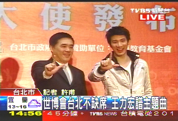 “一見你就笑” 王力宏創(chuàng)作上海世博會(huì)臺(tái)北館主題曲(圖片來源:臺(tái)灣TVBS電視臺(tái))