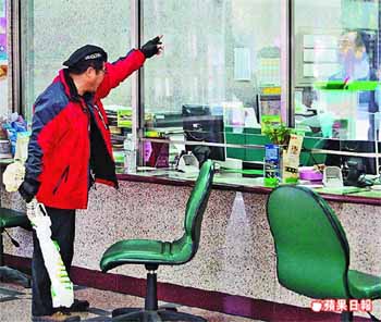 王先生指出,短少這筆錢生意做不成了,“我的信用也因此破產(chǎn)!”氣得他立刻趕回臺(tái)灣,找辦理匯款的郵局質(zhì)問,“郵局告訴我,這并非郵局業(yè)務(wù),而是委由銀行處理,他們說會(huì)告知銀行,查了以后再通知我!钡捎谕跸壬冀K未接獲回復(fù),他一氣之下昨竟拿著用塑料袋包裹的棍狀健身器材,沖到臺(tái)北市南港路二段的郵局砸桌理論。