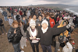 2010年第一天,屏東墾丁龍盤公園聚集上萬民眾前來迎接第一道曙光,大家冒著寒風(fēng)殷殷期待,但未能如愿,不過大家仍很興奮。來源:臺灣《聯(lián)合晚報》