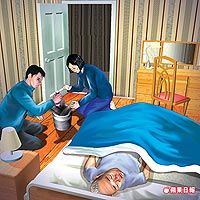 鐘裕雄與妻子林寶雪,疑似將父親鐘火路喂藥后,在其房?jī)?nèi)燒炭。然后夫妻兩人接著回臥室手綁紅線燒炭自殺。來源:臺(tái)灣《蘋果日?qǐng)?bào)》