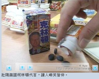 桃園縣衛(wèi)生局與警方稽查在公園販賣(mài)藥品的路邊攤,共查獲29種、339盒壯陽(yáng)藥,其中兩種壯陽(yáng)藥包裝最為夸張,一款稱“克林頓”,另一款“金功夫”則以李連杰為噱頭;這些藥品皆未經(jīng)臺(tái)“衛(wèi)生署”核可,并驗(yàn)出可能致死禁藥,警方將業(yè)者移送法辦。