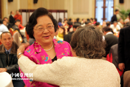 “2010年在京臺(tái)胞新春同樂(lè)會(huì)”今天下午在京舉行,圖為全國(guó)政協(xié)副主席、臺(tái)盟中央主席林文漪與老臺(tái)胞共敘鄉(xiāng)情。(中國(guó)臺(tái)灣網(wǎng) 張弛 攝)