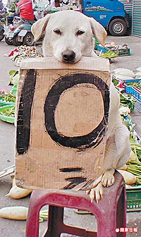 中國(guó)臺(tái)灣網(wǎng)1月26日消息 據(jù)臺(tái)灣《蘋果日?qǐng)?bào)》報(bào)道,云林縣土庫(kù)鎮(zhèn)馬光厝黃昏市場(chǎng)的菜販黃再添,兩個(gè)月前收養(yǎng)一只白色流浪土狗,取名“l(fā)ucky”。它十分聰明,經(jīng)過(guò)訓(xùn)練之后,每天都會(huì)用嘴叼著“10元”的牌子,安靜蹲坐在菜攤前椅子上幫忙招攬客人,還會(huì)送塑料袋給顧客及收錢、找錢,立刻成為市場(chǎng)內(nèi)的活招牌,許多客人表示:“l(fā)ucky很聰明可愛,大家都是為了看它,所以特地大老遠(yuǎn)跑來(lái)買菜!保ǜ叽罅郑