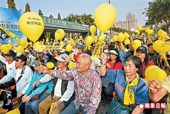 “阿扁俱樂部”高雄總部昨成立,挺扁民眾吁釋放陳水扁。來源:臺(tái)灣《蘋果日報(bào)》