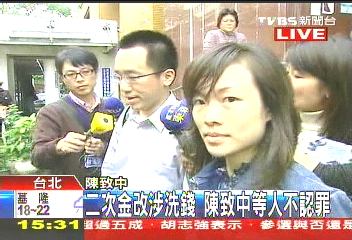 臺(tái)北地方法院首度審理二次金改弊案,陳致中、陳幸妤及黃睿靚都不認(rèn)罪。(圖片來源:臺(tái)灣TVBS電視臺(tái))