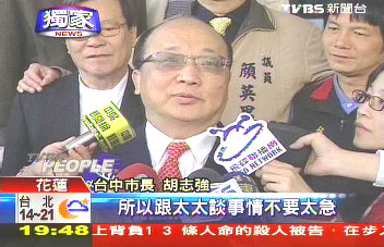 胡志強(qiáng)對金溥聰開誠布公,終于說出“我愿意”,但臺(tái)面上卻似乎還是有顧慮,不肯自己親口說。臺(tái)中市長胡志強(qiáng)說:“我現(xiàn)在和黨部的約會(huì)見面,如果能夠約到金秘書長,據(jù)說可能要等到禮拜六或禮拜天,所以跟太太談事情不要太急,不是扭扭捏捏,我不會(huì)給太太壓力,我是確實(shí)是太太不愿意。”