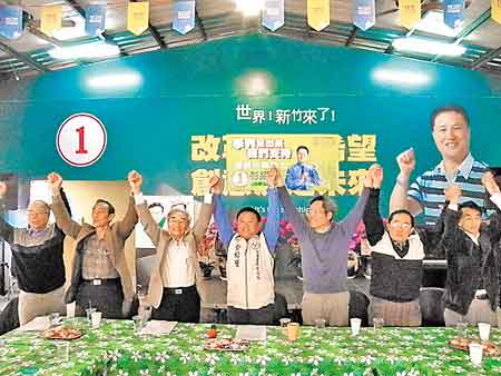 23日有多位學(xué)者聯(lián)署支持新竹縣民進(jìn)黨“立委”補(bǔ)選候選人彭紹瑾(中)。圖片來源:臺灣《中國時(shí)報(bào)》