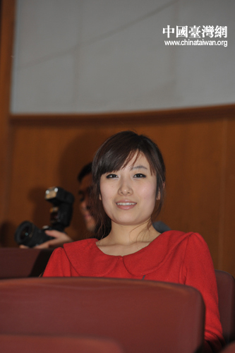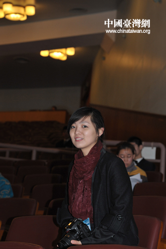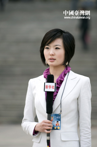 人民網(wǎng)的美女記者在大會(huì)堂采訪。 (中國(guó)臺(tái)灣網(wǎng)發(fā) 肖春陽(yáng)、劉洋)