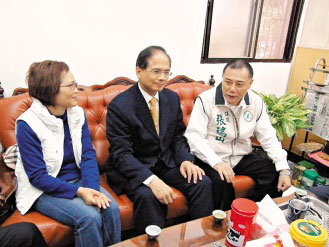 前“行政院長”游錫堃(中)上午拜訪民進黨籍臺北縣議員,試探新北市長黨內(nèi)選情。圖片來源:臺灣《聯(lián)合晚報》