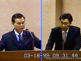女婿臺(tái)當(dāng)局“新聞局長(zhǎng)”江啟臣(右)接受岳父民代劉盛良(左)的質(zhì)詢。 來(lái)源臺(tái)灣“今日新聞網(wǎng)”