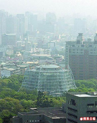 臺(tái)中市昨日上午天空灰蒙蒙,圖為臺(tái)中市科博館前植物園一帶。 來(lái)源:臺(tái)灣《蘋果日?qǐng)?bào)》