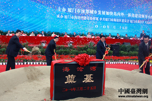 領(lǐng)導(dǎo)進(jìn)行海滄灣奠基培土。(中國臺灣網(wǎng) 董潔 攝)