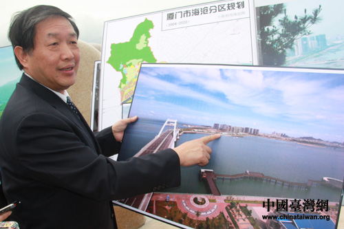 廈門市副市長潘世建向記者描繪新區(qū)愿景。(中國臺灣網(wǎng) 董潔 攝)