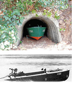二戰(zhàn)末期,日本以高速艇組成自殺攻擊的震洋特攻隊(duì),上圖為位于日本奄美大島中的第18震洋水上特攻隊(duì)用來藏自殺快艇的洞穴,下圖為震洋水上特攻隊(duì)快艇。 來源:臺灣《中國時(shí)報(bào)》