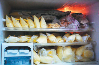 蔡秀珍去年8月生產(chǎn),產(chǎn)后當母乳媽媽,奶水愈來愈多,一天的奶量扣除小孩吃還有1000毫升,“冰箱冷凍室放到?jīng)]有地方可放”。孩子喝不完的母奶,她制成母乳冰塊、母乳棒冰送親朋好友,“市面絕對買不到!”