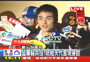 藝人阮經(jīng)天:“我目前為止,我還不知道什么時候會畢業(yè),可是我想你要問的,應(yīng)該是會不會當(dāng)兵吧,我一定不會不當(dāng)兵,就是我覺得當(dāng)兵是應(yīng)盡的義務(wù),所以我不會逃,其實(shí)我也不太逃!
