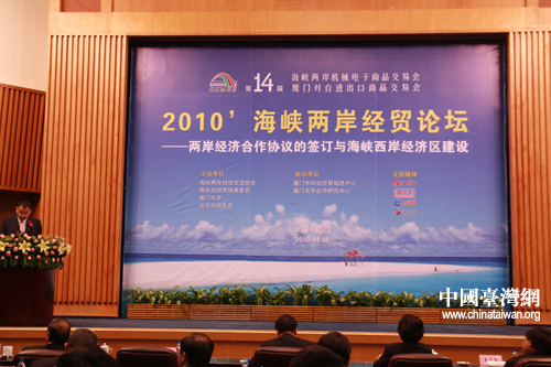 第十四屆臺交會的重頭戲——2010海峽兩岸經(jīng)貿(mào)論壇在臺交會開幕式后隆重登場。兩岸專家學者就“兩岸經(jīng)濟合作協(xié)議的簽訂與海峽西岸經(jīng)濟區(qū)建設(shè)”展開了精彩的演講。(中國臺灣網(wǎng) 肖燕 攝)