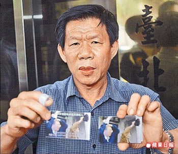 扯邱毅假發(fā)照片印名片,黃永田一審遭判6個月。來源:臺灣《蘋果日報》