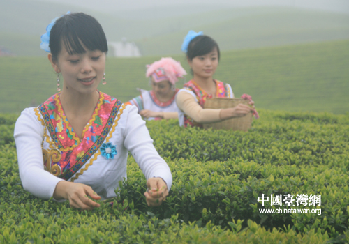 勤勞美麗的采茶姑娘(中國(guó)臺(tái)灣網(wǎng) 李丹 攝)